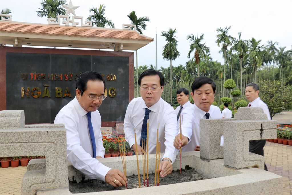 Tại các điểm viếng, đoàn đã thắp hương và dành phút mặc niệm tưởng nhớ Chủ tịch Hồ Chí Minh vĩ đại, đồng bào, chiến sỹ đã không ngại hiểm nguy, hy sinh xương máu của mình trên quê hương Hóc Môn - 18 thôn vườn trầu, vì độc lập, tự do của dân tộc.