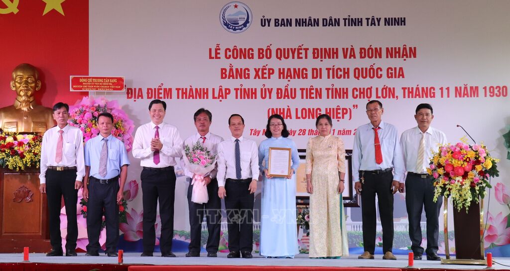 Sáng 28/11, tại Di tích Nhà Long Hiệp (xã Mỹ Yên), UBND tỉnh Tây Ninh tổ chức Lễ Công bố quyết định và đón nhận Bằng xếp hạng di tích quốc gia “Địa điểm thành lập Tỉnh ủy đầu tiên tỉnh Chợ Lớn, tháng 11/1930 (Nhà Long Hiệp)”. Sự kiện diễn ra trong không khí thi đua chào mừng Đại hội đại biểu Đảng bộ tỉnh Tây Ninh lần thứ nhất (nhiệm kỳ 2025 - 2030) thành công và kỷ niệm 95 năm thành lập Tỉnh ủy đầu tiên tỉnh Chợ Lớn (1930 - 2025).