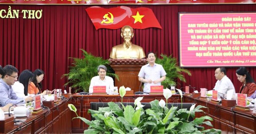 Chiều 1/12, tại cuộc làm việc với Thành ủy Cần Thơ, ông Nguyễn Quang Đức, Phó Trưởng ban Ban Tuyên giáo và Dân vận Trung ương, Trưởng đoàn khảo sát Ban Tuyên giáo và Dân vận Trung ương đánh giá cao những định hướng phát triển của thành phố Cần Thơ sau hợp nhất được đề ra tại Đại hội Đảng bộ thành phố vừa qua.