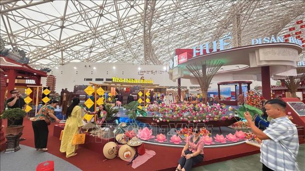 Tại khu vực Nhà triển lãm Kim Quy (sảnh H5, H6, H7), mỗi gian trưng bày như một lát cắt văn hóa đặc sắc, tái hiện sinh động lịch sử, bản sắc và tiềm năng phát triển của từng địa phương. Trong đó, gian trưng bày của tỉnh Ninh Bình với chủ đề “Ninh Bình cùng cả nước bước vào kỷ nguyên mới - Kỷ nguyên vươn mình của dân tộc Việt Nam” nổi bật, thu hút đông đảo người dân và du khách đến tham quan, tìm hiểu và check-in lưu niệm.