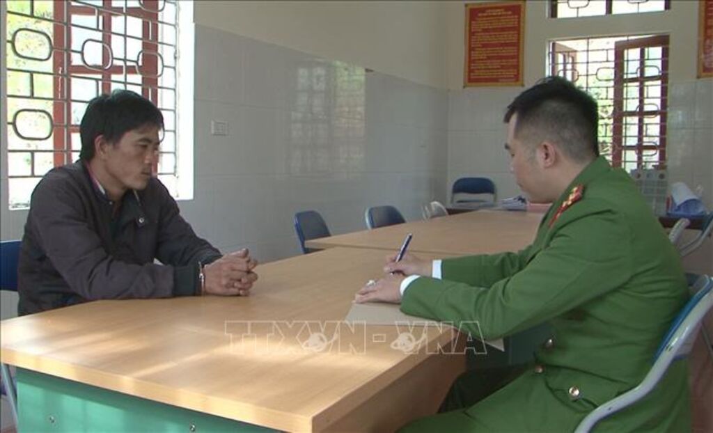Đối tượng Vì Văn Ngân tại cơ quan công an. (Ảnh: TTXVN phát)