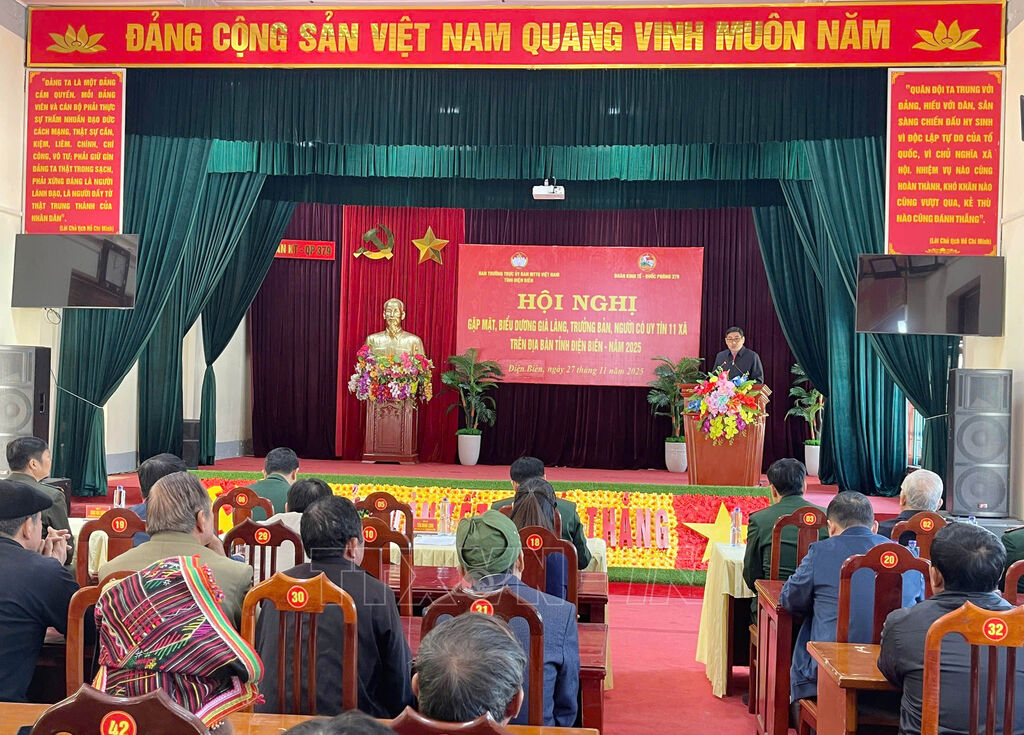 Ngày 27/11, Ban Thường trực Ủy ban MTTQ Việt Nam tỉnh Điện Biên phối hợp với Đoàn Kinh tế - Quốc phòng 379 (Quân khu 2)tổ chức Hội nghị gặp mặt, biểu dương già làng, trưởng bản, người có uy tín 11 xã trên địa bàn tỉnh Điện Biên năm 2025.