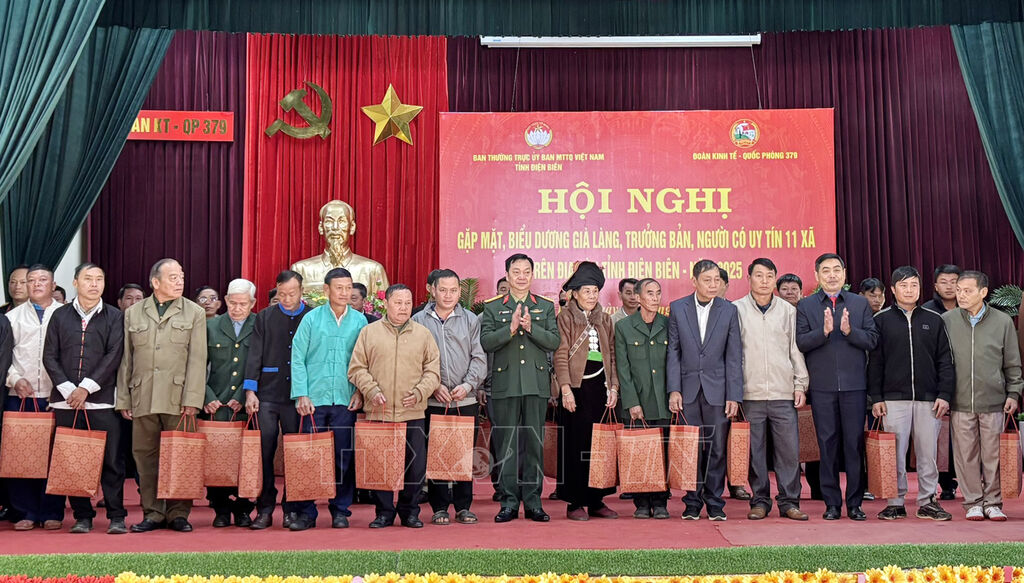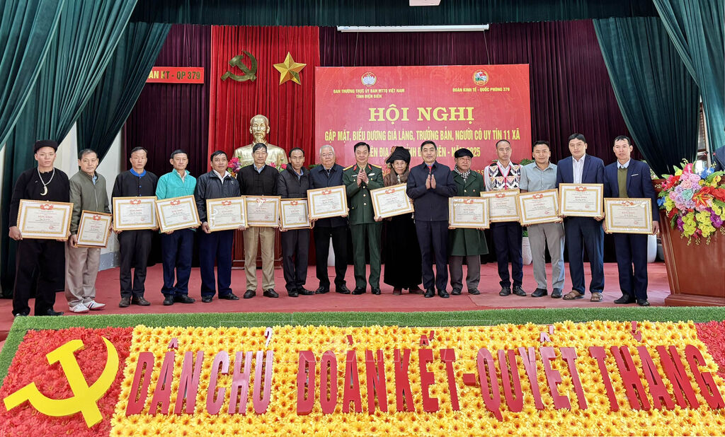 Nhân dịp này, Ủy ban MTTQ Việt Nam tỉnh Điện Biên tặng Bằng khen 15 cá nhân tiêu biểu là già làng, trưởng bản, người có uy tín ở các xã trong khu vực Kinh tế - Quốc phòng Mường Chà năm 2025. Ủy ban MTTQ Việt Nam tỉnh Điện Biên và Đoàn Kinh tế - Quốc phòng 379 đã trao 90 suất quà cho các già làng, trưởng bản, người có uy tín tham dự hội nghị./.