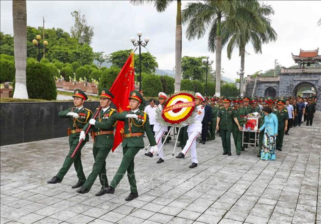 Tại buổi lễ, các đại biểu đã thành kính dâng hương, dâng hoa kính cẩn nghiêng mình trước anh linh các anh hùng liệt sĩ, những người con ưu tú của dân tộc đã không tiếc máu xương, anh dũng chiến đấu, hy sinh vì nền độc lập dân tộc, tự do của Tổ quốc, vì nghĩa vụ quốc tế cao cả./.