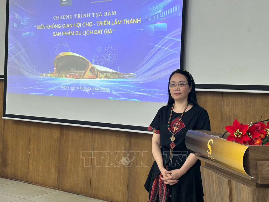 Phát biểu khai mạc tọa đàm, Tiến sĩ Nguyễn Thu Hạnh, Chủ tịch Liên hiệp Khoa học Phát triển Du lịch bền vững, kiêm Giám đốc Trung tâm Nghiên cứu Phát triển Công nghiệp Văn hóa Việt Nam cho biết, trong dòng chảy mạnh mẽ của kinh tế sáng tạo toàn cầu, nhiều quốc gia đã bắt đầu nhìn nhận lại vai trò của các không gian hội chợ - triển lãm không chỉ là những địa điểm tổ chức sự kiện mà còn là những “cỗ máy tạo giá trị” của đô thị hiện đại. Ở đó, văn hóa, thương mại, du lịch và công nghệ trải nghiệm được kết nối trong cùng một hệ sinh thái, biến mỗi kỳ hội chợ hay triển lãm trở thành một sự kiện văn hóa - du lịch - kinh tế hấp dẫn đối với hàng triệu du khách. Điều này đặt ra một câu hỏi lớn: Liệu Việt Nam có thể biến các không gian hội chợ -triển lãm của mình thành những sản phẩm du lịch đắt giá, có sức hút quốc tế hay không? Chính từ cách tiếp cận đó, tọa đàm hướng tới việc gợi mở các định hướng và giải pháp nhằm tổ chức, khai thác hiệu quả không gian hội chợ - triển lãm theo hướng đa chức năng, góp phần hình thành chuỗi giá trị liên kết giữa công nghiệp văn hóa, xúc tiến thương mại và phát triển du lịch.