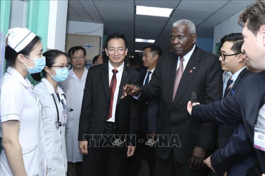 TTXVN - Chiều 25/9, trong khuôn khổ chuyến thăm và dự lễ Kỷ niệm 50 năm lãnh tụ Fidel Castro thăm vùng giải phóng miền Nam Việt Nam (1973-2023), Đoàn đại biểu cấp cao của Đảng, Chính phủ nước Cộng hòa Cuba do ông Esteban Lazo Hernandez, Ủy viên Bộ Chính trị, Chủ tịch Quốc hội Chính quyền Nhân dân Cộng hòa Cuba dẫn đầu, đã đến thăm Bệnh viện Hữu nghị Việt Nam - Cuba Đồng Hới.
