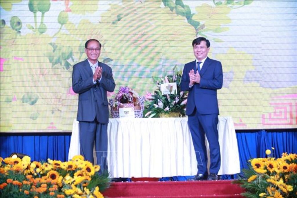 Nhân dịp Tết cổ truyền của dân tộc Việt Nam, Trưởng đoàn hai tỉnh Svay Rieng và Prey Veng chúc mừng năm mới hạnh phúc, bình an; chúc mối quan hệ giữa ba địa phương ngày càng đoàn kết, hữu nghị, hợp tác./.