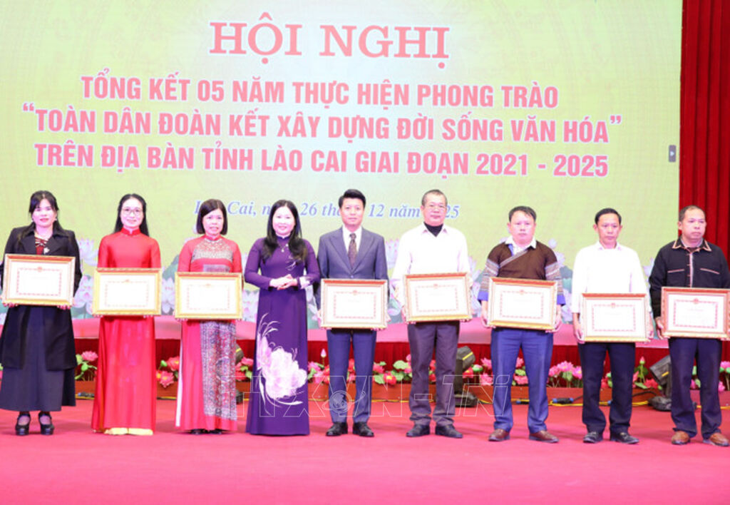 Dịp này, UBND tỉnh tặng Bằng khen cho 8 tập thể, 4 gia đình có thành tích tiêu biểu, xuất sắc trong thực hiện phong trào “Toàn dân đoàn kết xây dựng đời sống văn hóa” tỉnh Lào Cai giai đoạn 2021- 2025./.