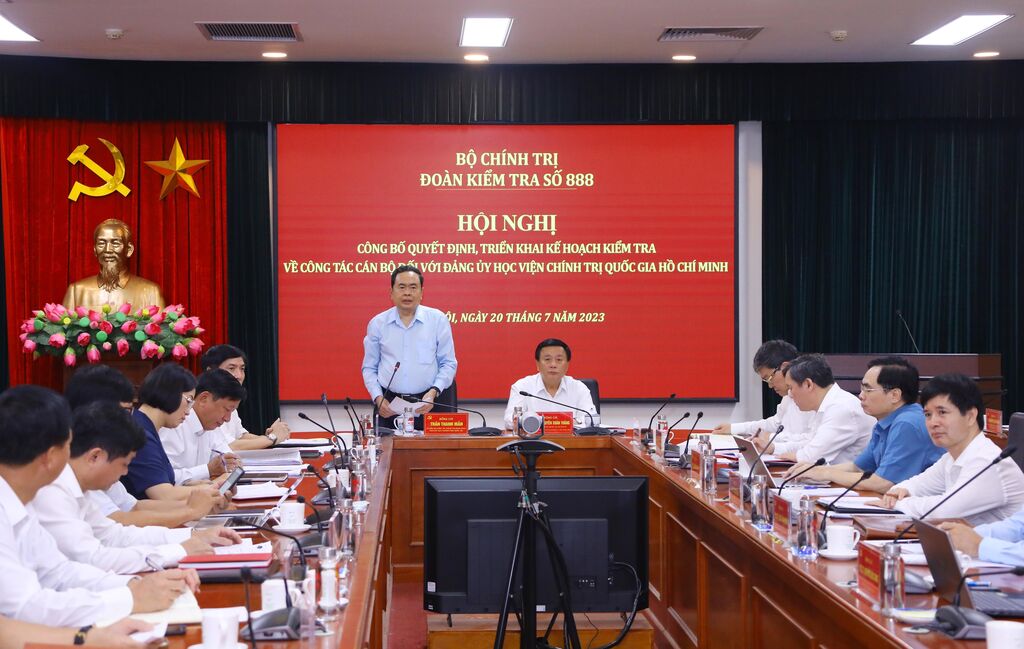 Thay mặt Đoàn kiểm tra, Ủy viên Trung ương Đảng, Tổng Thư ký Quốc hội, Chủ nhiệm Văn phòng Quốc hội Bùi Văn Cường, Phó trưởng Đoàn kiểm tra số 888 của Bộ Chính trị đã triển khai Quyết định số 888-QĐNS/TW ngày 7/6/2023 của Bộ Chính trị về việc lãnh đạo, chỉ đạo, tổ chức thực hiện công tác cán bộ theo các Nghị quyết của Đảng đối với Đảng ủy Học viện Chính trị Quốc gia Hồ Chí Minh và các Ban Thường vụ Tỉnh ủy Thừa Thiên - Huế, Hà Giang.