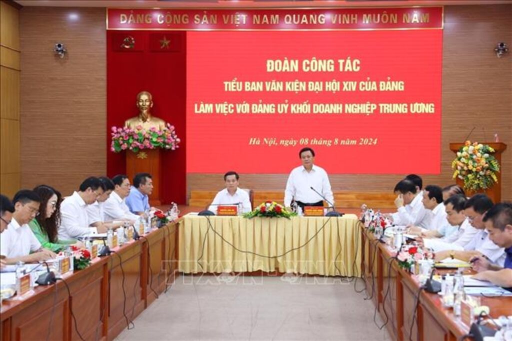 Thực hiện kế hoạch công tác của Tiểu ban Văn kiện Đại hội XIV, ngày 8/8/2024, tại Hà Nội, Đoàn Tiểu ban Văn kiện do đồng chí Nguyễn Xuân Thắng, Ủy viên Bộ Chính trị, Chủ tịch Hội đồng Lý luận Trung ương, Giám đốc Học viện Chính trị quốc gia Hồ Chí Minh, Thường trực Tiểu ban Văn kiện, Tổ trưởng Tổ biên tập Văn kiện Đại hội XIV, làm Trưởng đoàn đã có buổi làm việc với Đảng ủy Khối doanh nghiệp Trung ương.