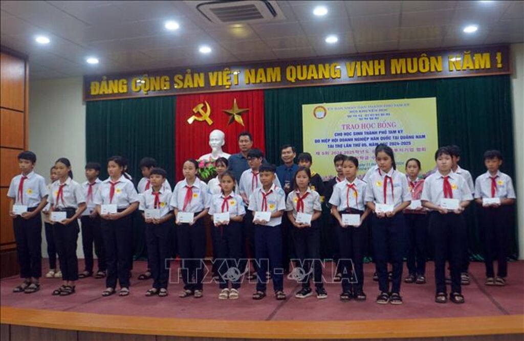 Trong 5 năm qua, Hiệp hội các Doanh nghiệp Hàn Quốc tại Quảng Nam đã trao 633 suất học bổng cho học sinh có hoàn cảnh khó khăn vươn lên học giỏi tại thành phố Tam Kỳ, góp phần động viên, giúp các em có thêm điều kiện bước vào năm học.
