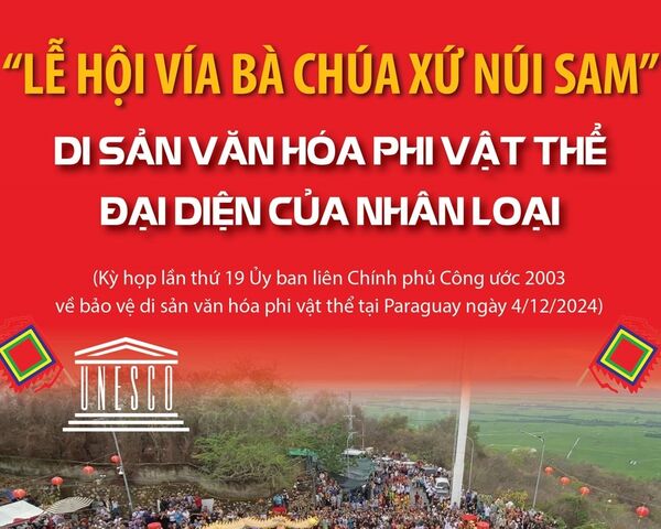 Sắp tới, tỉnh An Giang sẽ tổ chức lễ đón bằng UNESCO ghi danh Di sản Văn hóa phi vật thể Lễ hội Vía Bà Chúa Xứ núi Sam vào danh sách Di sản Văn hóa phi vật thể đại diện của nhân loại nhân dịp khai hội năm 2025. Tỉnh tiếp tục nghiên cứu, kiểm kê, tư liệu hóa di sản văn hóa phi vật thể Lễ hội Vía Bà Chúa Xứ núi Sam và các tập quán, nghi lễ, lễ hội truyền thống tốt đẹp gắn với di sản; khuyến khích nghệ nhân truyền dạy cho thế hệ trẻ. An Giang tăng cường công tác quản lý nhà nước nhằm gìn giữ, bảo vệ và phát huy những giá trị tốt đẹp của di sản; bảo vệ tính nguyên bản của các nghi lễ tránh thương mại hóa hoặc biến tướng lễ hội…/.