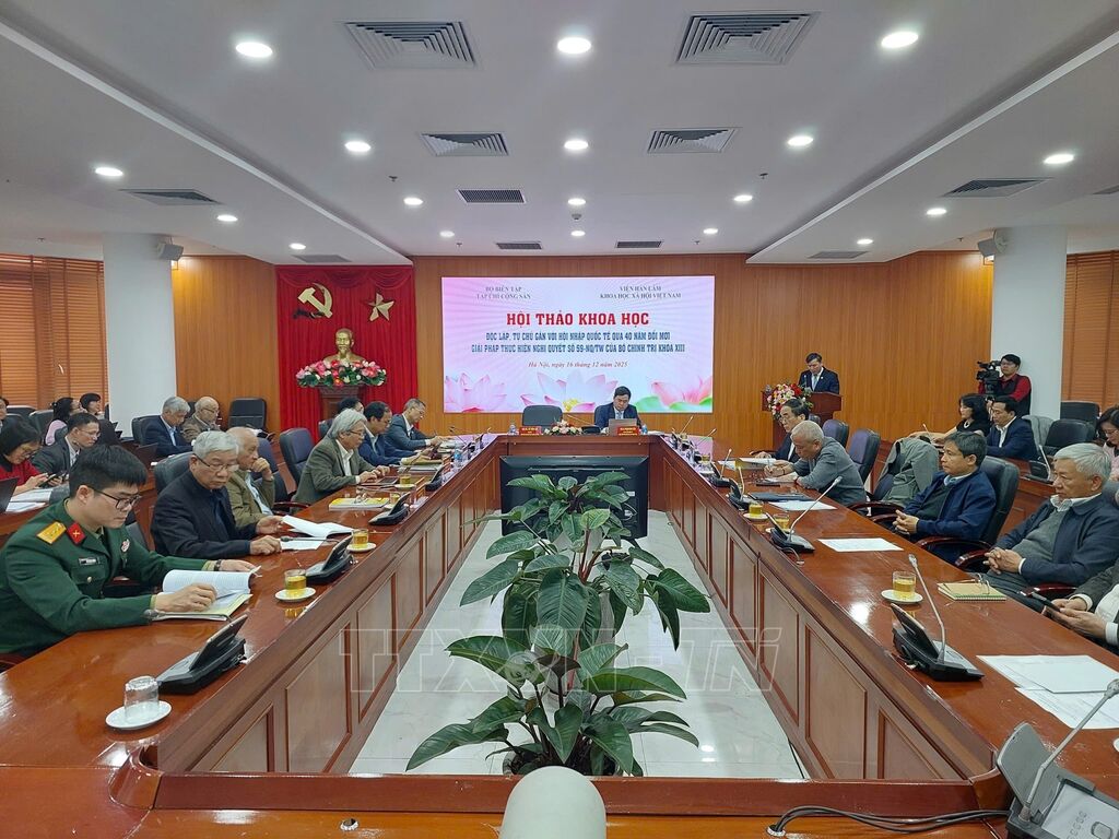Chiều 16/12, tại Hà Nội, Viện Hàn lâm Khoa học xã hội Việt Nam (VASS) phối hợp với Bộ Biên tập Tạp chí Cộng sản tổ chức Hội thảo khoa học với chủ đề “Độc lập, tự chủ gắn với hội nhập quốc tế qua 40 năm đổi mới - Giải pháp thực hiện Nghị quyết số 59-NQ/TW của Bộ Chính trị khóa XIII”.