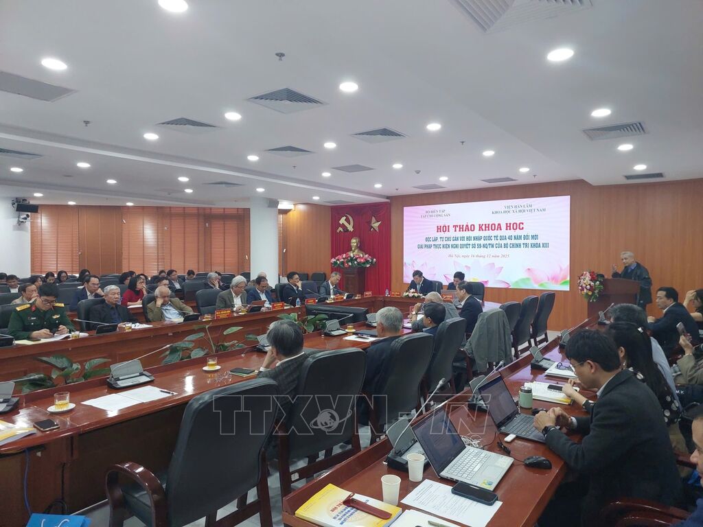Phát biểu khai mạc Hội thảo, Giáo sư, Tiến sĩ Lê Văn Lợi, Chủ tịch Viện Hàn lâm Khoa học xã hội Việt Nam cho biết, độc lập, tự chủ gắn với hội nhập quốc tế là quan điểm nhất quán của Đảng Cộng sản Việt Nam trong quá trình lãnh đạo công cuộc đổi mới đất nước. Đây là một trong mười cặp quan hệ lớn, mang tính cốt lõi trong đường lối đổi mới của Đảng được Đại hội XIII và Dự thảo các Văn kiện trình Đại hội XIV của Đảng tiếp tục khẳng định trên cơ sở kế thừa, phát triển quan điểm của Đảng trong các kỳ đại hội trước. Độc lập, tự chủ là nguyên tắc nền tảng bảo đảm chủ quyền, toàn vẹn lãnh thổ, bản lĩnh và vị thế quốc gia, bao trùm lên tất cả các lĩnh vực chính trị, kinh tế, văn hóa, đối ngoại, an ninh quốc phòng.