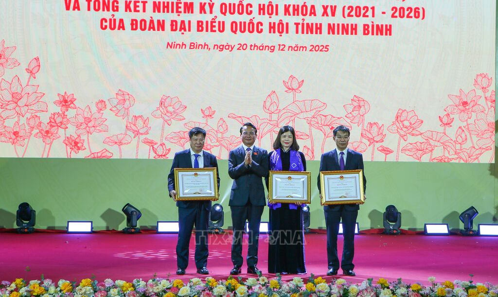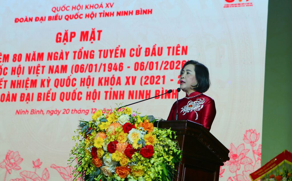 Ngày 20/12, Đoàn đại biểu Quốc hội tỉnh Ninh Bình tổ chức gặp mặt kỷ niệm 80 năm ngày tổng tuyển cử đầu tiên bầu Quốc hội Việt Nam (6/1/1946 - 6/1/2026) và tổng kết nhiệm kỳ Quốc hội khóa XV (2021- 2026). Tham dự có các đồng chí Ủy viên Trung ương Đảng: Nguyễn Thị Thanh, Phó Chủ tịch Quốc hội; Nguyễn Thị Thu Hà, Phó Chủ tịch - Tổng Thư ký Ủy ban Trung ương MTTQ Việt Nam; Lê Thị Nga, Ủy viên Ủy ban Thường vụ Quốc hội, Phó Chủ nhiệm thường trực Ủy ban Dân nguyện và Giám sát của Quốc hội; Đặng Xuân Phong, Bí thư Tỉnh ủy, Trưởng đoàn đại biểu Quốc hội tỉnh Ninh Bình.