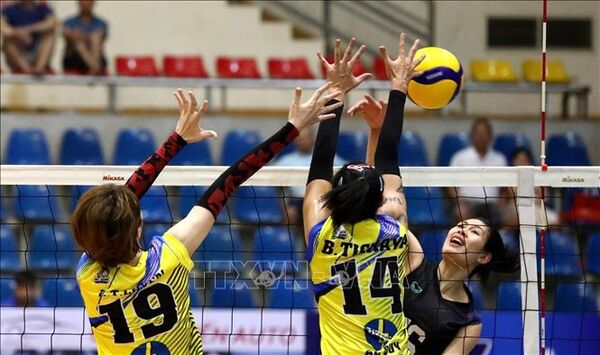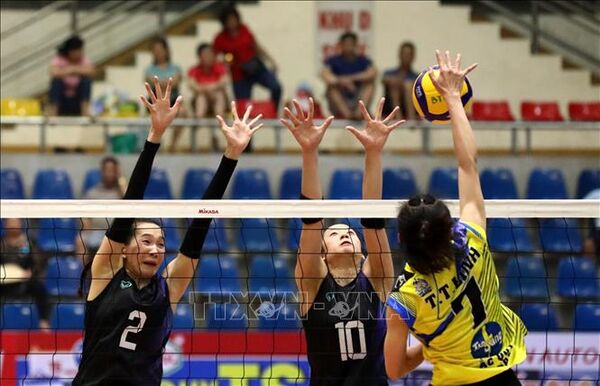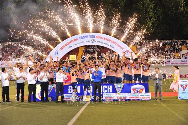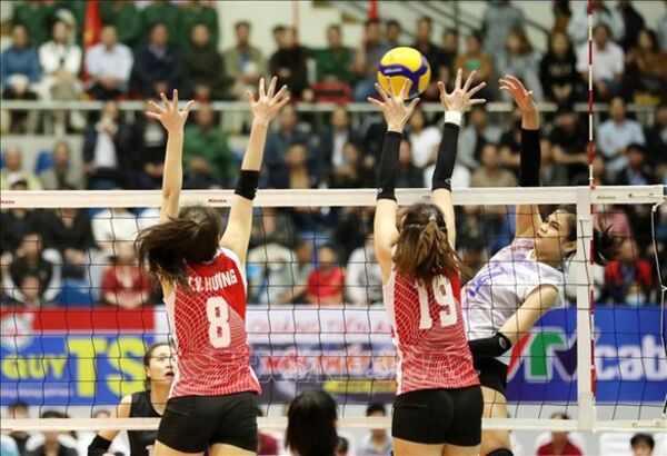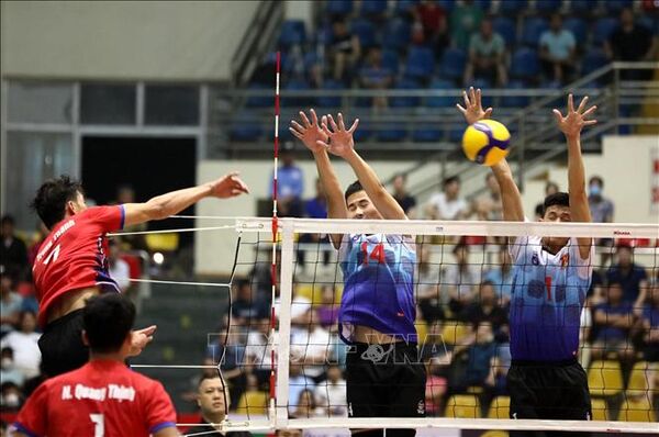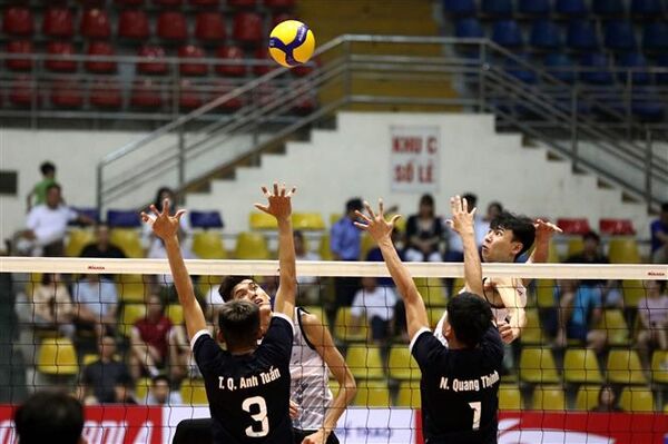 TTXVN - Trong trận chung kết Giải bóng chuyền cúp Hùng Vương 2023 ở nội dung nam diễn ra lúc 21 giờ 30 ngày 26/3 tại Nhà luyện tập và thi đấu thể dục thể thao tỉnh Phú Thọ, các chàng trai Biên Phòng đã xuất sắc giành chiến thắng chung cuộc với tỷ số 3-1 trước Sanest Khánh Hòa để đăng quang vô địch.