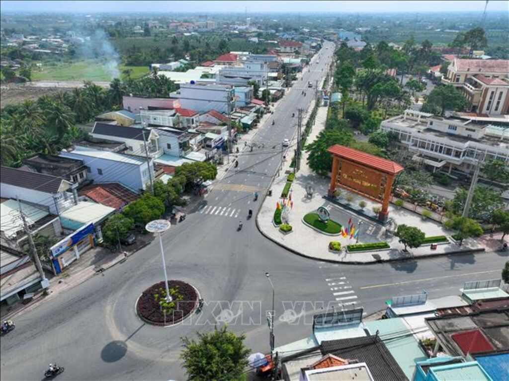 Xây dựng nông thôn mới, huyện định hướng phát triển sản xuất theo hướng tập trung chuyển đổi đất sản xuất lúa hiệu quả thấp sang trồng cây thanh long, chăn nuôi và nuôi trồng thủy sản có giá trị kinh tế cao, trong đó có thanh long và tôm. Ngoài ra, huyện chỉ đạo phát triển sản xuất nông nghiệp theo quy hoạch và áp dụng công nghệ cao, sản xuất hữu cơ để tăng hiệu quả kinh tế, bảo vệ môi trường.