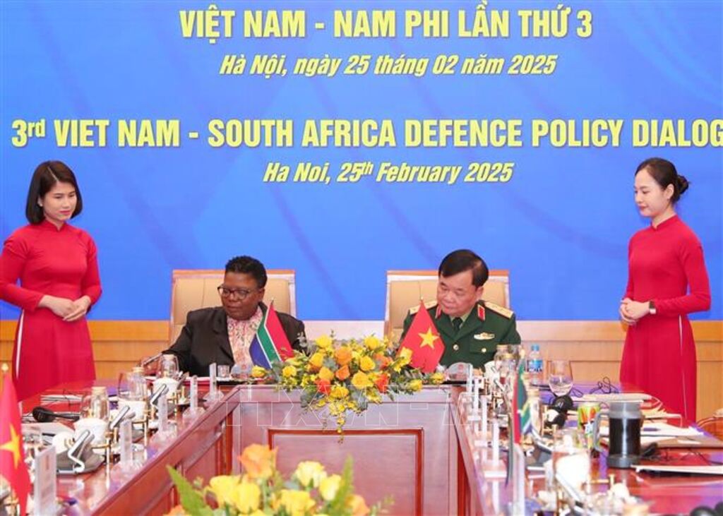 Sáng 25/2, tại Hà Nội, Thượng tướng Hoàng Xuân Chiến, Ủy viên Trung ương Đảng, Ủy viên Thường vụ Quân ủy Trung ương, Thứ trưởng Bộ Quốc phòng Việt Nam và bà Thobekile Gamede (Thô-bê-ki-lê Ga-mê-đê), Quyền Tổng Thư ký Quốc phòng Nam Phi, đồng chủ trì Đối thoại Chính sách quốc phòng Việt Nam – Nam Phi lần thứ 3.