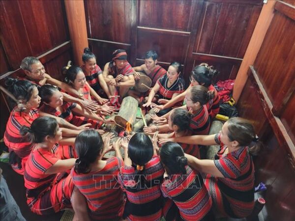 Trong những hồi chiêng, trống linh thiêng, tất cả già làng và người dân đã nắm chặt tay đưa lên trên đầu cùng hô vang "Xin nguyện mang họ Hồ! Xin nguyện mang họ Hồ!" để thể hiện tâm nguyện của mình.