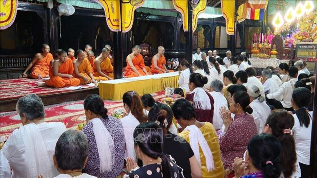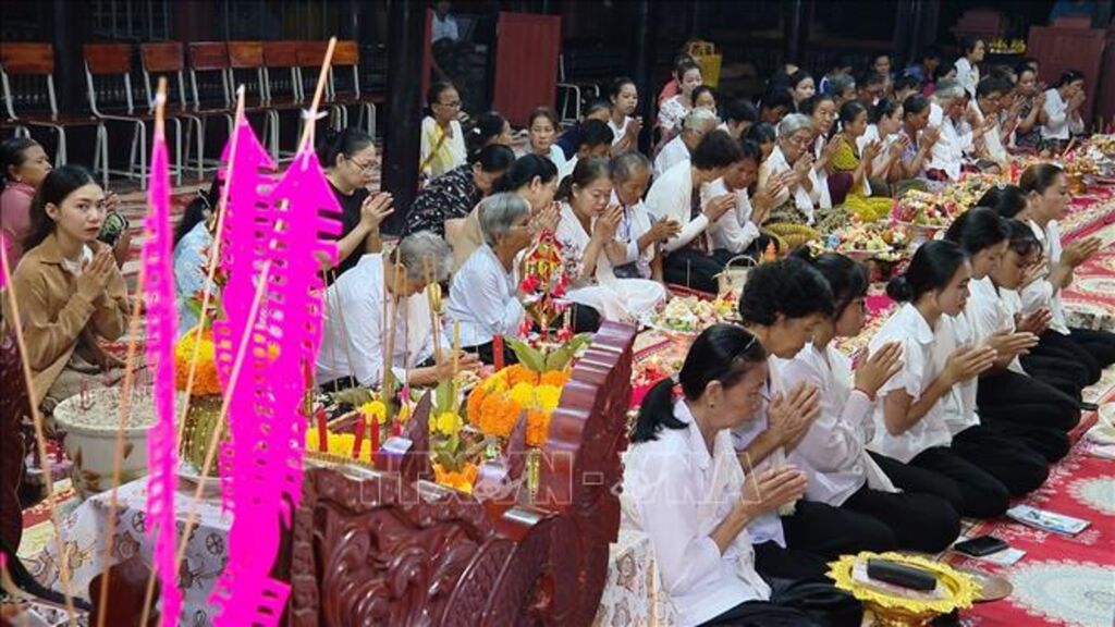 Trong những ngày lễ, bàn thờ tổ tiên được dọn dẹp trang nghiêm, bày biện hoa quả đẹp mắt. Sau nghi thức cúng tại gia, buổi tối bà con thường đến chùa nghe chư tăng tụng kinh, cúng dường và cầu phước. Tại chùa, bà con dâng cơm, dâng vật thực đến các vị chư tăng. Dân gian cho rằng khi chư tăng tiến hành lễ cúng thì ở thế giới bên kia ông bà tổ tiên của họ được thọ hưởng nhận phước báu.