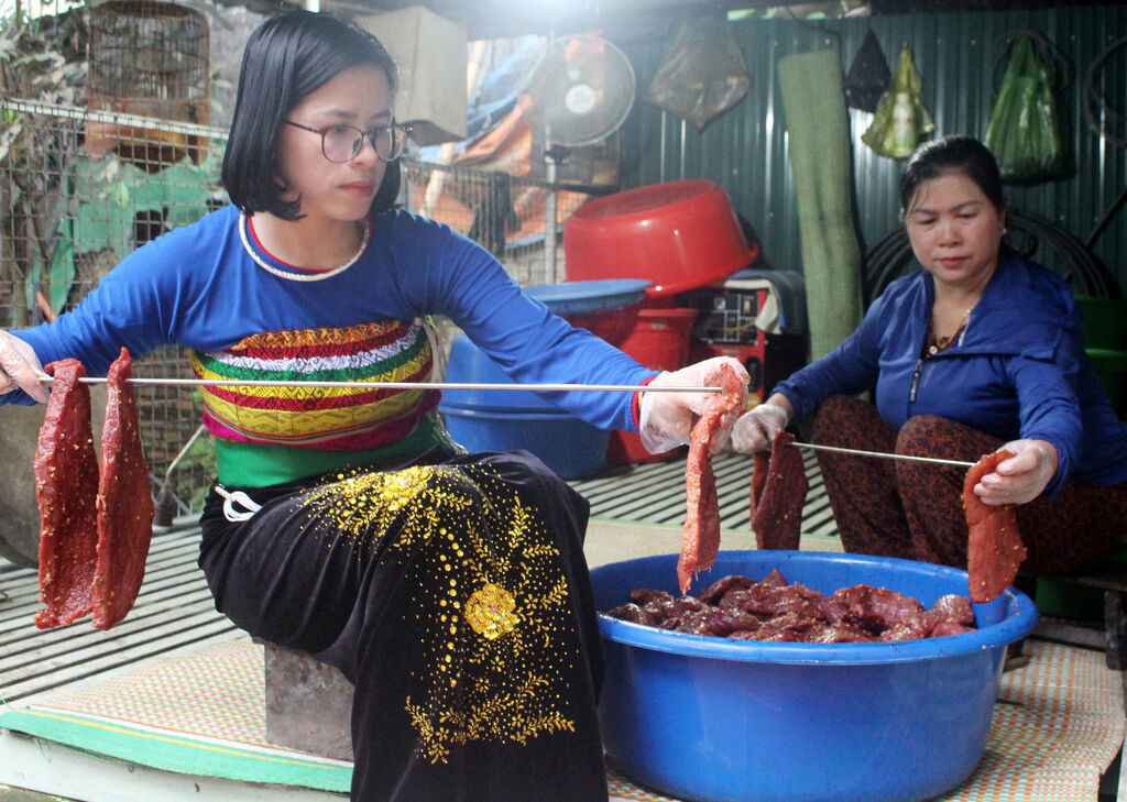 Năm 2017, với mong muốn phát triển kinh tế, đưa sản phẩm, đặc sản của địa phương đến nhiều người tiêu dùng, chị Lò Thị Quyến (xã Mường Lát) thành lập hộ kinh doanh sản xuất thịt trâu gác bếp Dì Ốc. Năm 2022, sản phẩm được chứng nhận OCOP 3 sao cấp tỉnh, là thương hiệu uy tín của địa phương.