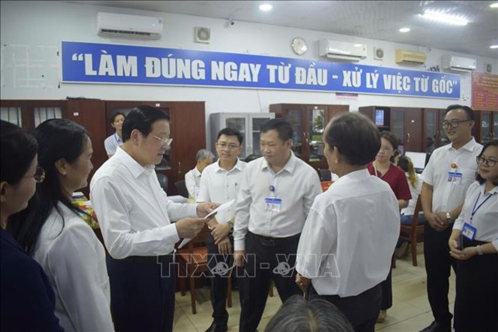 Đồng chí Phan Đình Trạc kiểm tra vận hành Trung tâm phục vụ hành chính công phường Long Khánh, Đồng Nai