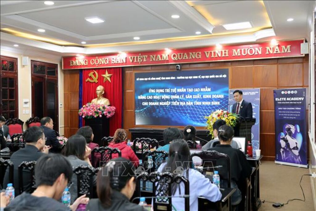 Khóa tập huấn “Ứng dụng công nghệ trí tuệ nhân tạo AI nhằm nâng cao hoạt động quản lý, sản xuất, kinh doanh cho doanh nghiệp trên địa bàn tỉnh Ninh Bình” được Sở Khoa học và Công nghệ tỉnh Ninh Bình phối hợp với Trường Đại học Kinh tế (Đại học quốc gia Hà Nội) tổ chức ngày 15/12.