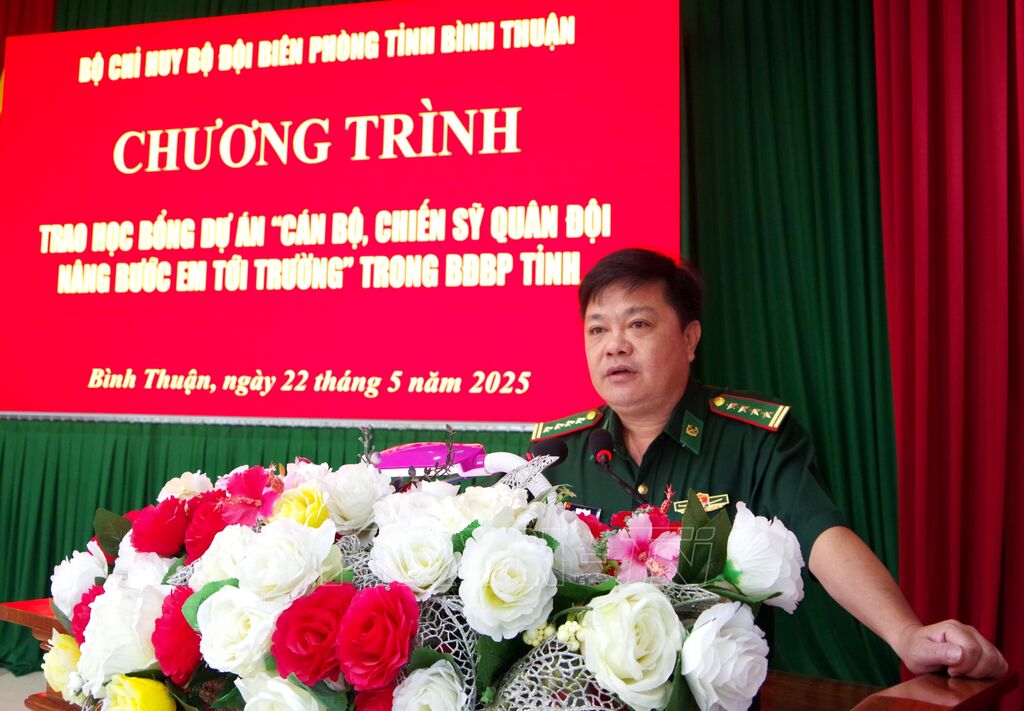 Tại lễ trao học bổng, Đại tá Đinh Văn Bộ, Phó Chính ủy Bộ đội Biên phòng Bình Thuận chúc mừng các học sinh vừa hoàn thành kỳ thi học kỳ của mình với những kết quả tốt. Đại tá Đinh Văn Bộ mong các cháu ý thức được sự quan tâm đầy ý nghĩa và tính nhân văn của Dự án để tiếp tục nỗ lực trong học tập và gặt hái nhiều thành tích trong những năm học tiếp theo.