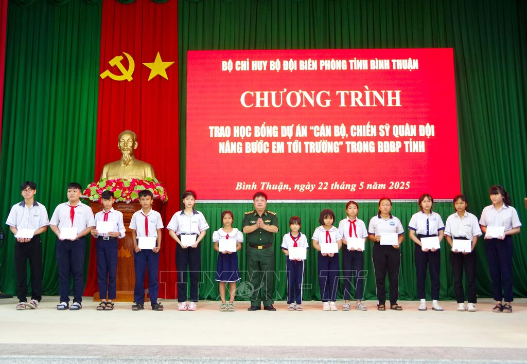 Cùng với nhận đỡ đầu 13 em học sinh theo Dự án “Cán bộ, chiến sỹ quân đội nâng bước em tới trường”, Bộ đội Biên phòng Bình Thuận còn nhận đỡ đầu 40 em học sinh theo chương trình “Nâng bước em tới trường” với số tiền hỗ trợ 4,5 triệu đồng/em/năm học.