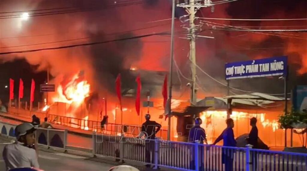 Khoảng 21 giờ 50 phút, ngày 15/8/2025, xảy ra vụ cháy chợ thực phẩm Tam Nông (ở đường Trần Hưng Đạo, ấp 2, xã Tràm Chim, tỉnh Đồng Tháp).