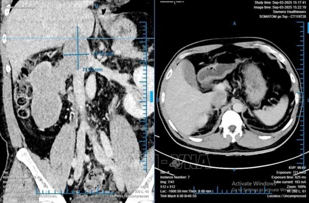 Trước đó, anh T.D.L (48 tuổi, quê Quảng Trị) phát hiện bướu thận trong lần khám sức khỏe định kỳ và tìm đến Bệnh viện Bình Dân để thực hiện phẫu thuật. Qua chẩn đoán hình ảnh, các bác sĩ nhận thấy bệnh nhân có một khối bướu lớn chiếm gần toàn bộ thận phải, kích thước 68x86x138 mm; huyết khối bướu lan sâu vào tĩnh mạch thận và tĩnh mạch chủ dưới. “Với khối bướu lớn và huyết khối bướu lan sâu như thế này, bệnh nhân có nguy cơ tử vong, tiên lượng thời gian sống trung bình của người bệnh chỉ khoảng 5 tháng nếu không được phẫu thuật kịp thời”, Tiến sĩ, bác sĩ Phạm Phú Phát, Trưởng Khoa Niệu A, Bệnh viện Bình Dân cho biết.