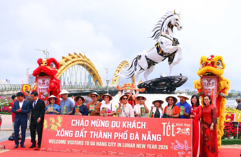 Ngày 17/2 (mùng 1 Tết), Sở Văn hóa, Thể thao và Du lịch thành phố Đà Nẵng phối hợp các đơn vị tổ chức chương trình “Khai xuân Du lịch Xuân Bính Ngọ 2026” và “Chào đón du khách xông đất” tại khuôn viên phía Nam cầu Rồng và Cảng hàng không quốc tế Đà Nẵng.