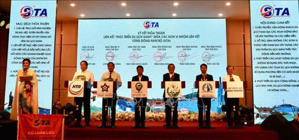 Dịp này, Hiệp hội Du lịch các tỉnh, thành phố vùng Đông Nam Bộ đã ký kết thỏa thuận liên kết phát triển du lịch xanh vùng Đông Nam Bộ với 3 mục tiêu: Chia sẻ kinh nghiệm trong thực hiện và xây dựng mô hình du lịch xanh; liên kết thực hiện chức năng cầu nối giữa các doanh nghiệp du lịch; hỗ trợ hội viên phát triển sản phẩm du lịch, dịch vụ ít phát thải carbon./.