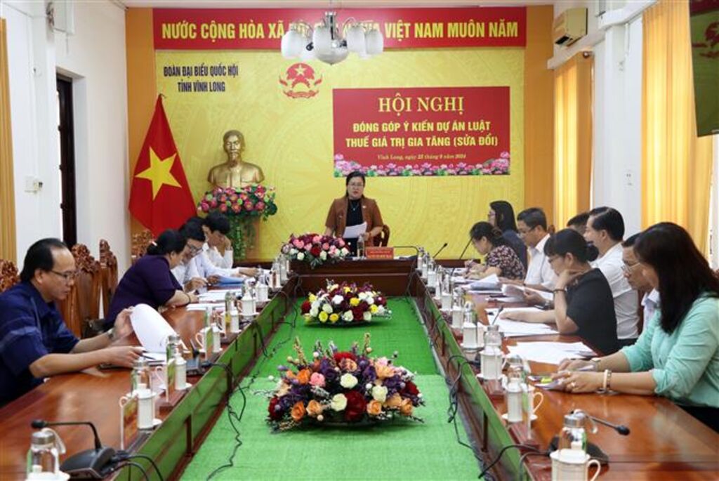 Ngày 25/9, Đoàn đại biểu Quốc hội tỉnh Vĩnh Long tổ chức Hội nghị đóng góp ý kiến dự thảo Luật Thuế giá trị gia tăng (sửa đổi). Trong dự thảo Luật có quy định về đối tượng chịu thuế, đối tượng không chịu thuế, người nộp thuế, căn cứ và phương pháp tính thuế, khấu trừ và hoàn thuế giá trị gia tăng.