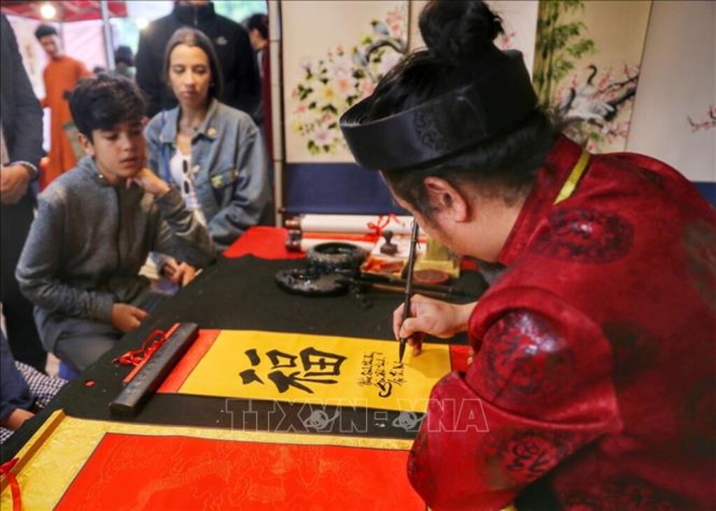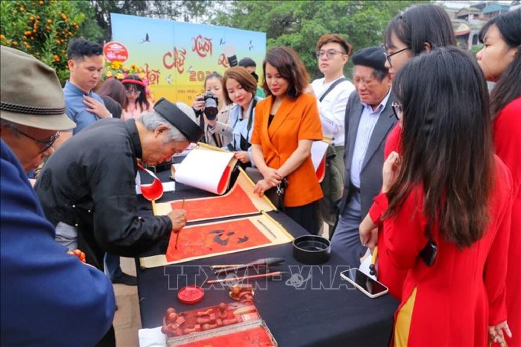 Du khách chờ lấy chữ tại Hội chữ Xuân Quý Mão 2023 (diễn ra tại Di tích quốc gia đặc biệt Văn Miếu-Quốc Tử Giám). (Ảnh: Tuấn Đức/TTXVN)