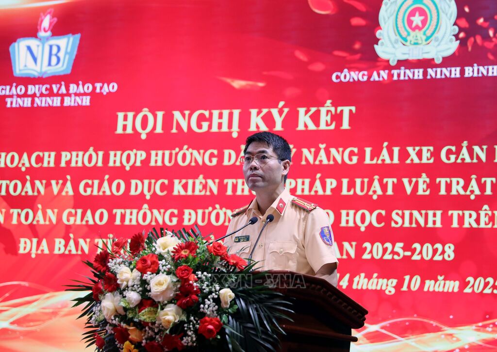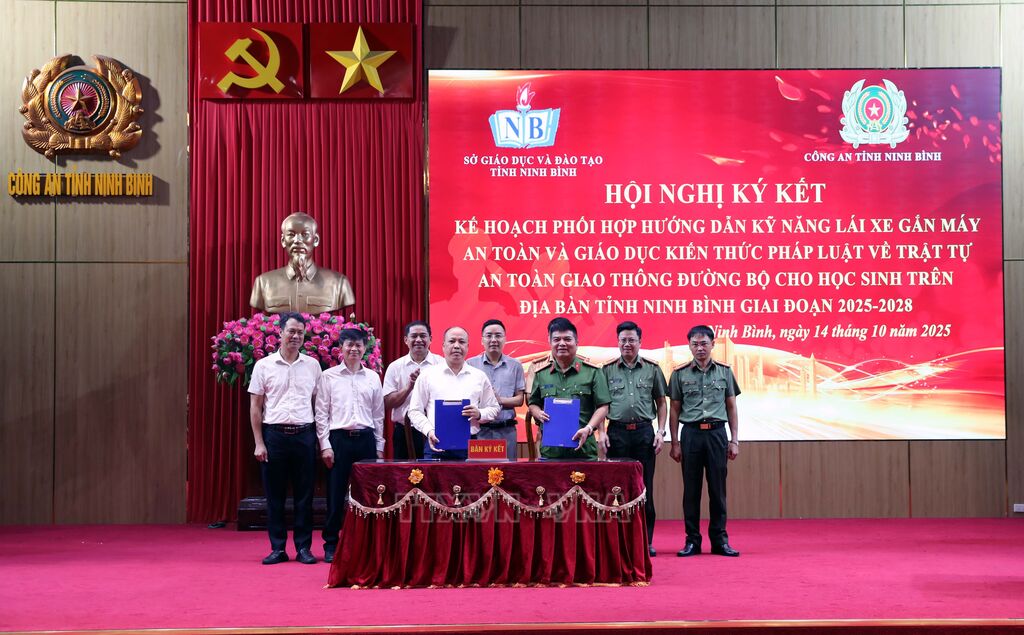 Ngày 14/10, Công an tỉnh Ninh Bình phối hợp với Sở Giáo dục và Đào tạo tỉnh tổ chức Hội nghị ký kết Kế hoạch phối hợp hướng dẫn kỹ năng lái xe gắn máy an toàn và giáo dục kiến thức pháp luật về trật tự an toàn giao thông đường bộ cho học sinh của tỉnh, giai đoạn 2025-2028.