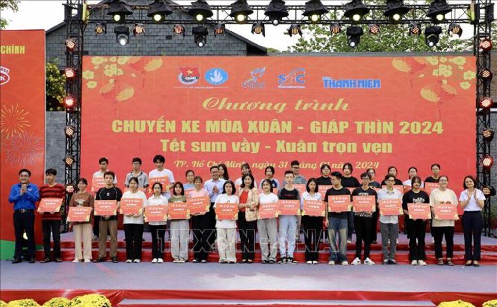 TTXVN - Ngày 31/1 (nhằm ngày 21 tháng Chạp âm lịch), tại Nhà Văn hóa Thanh niên Thành phố Hồ Chí Minh, Thành đoàn Thành phố tổ chức Chương trình “Chuyến xe mùa Xuân” tiễn sinh viên, người lao động có hoàn cảnh khó khăn trên địa bàn về quê đón Tết với chủ đề “Tết sum vầy, Xuân trọn vẹn”.