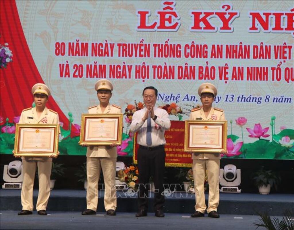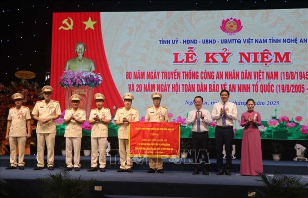 Ngày 13/8, Tỉnh ủy, HĐND, UBND, Ủy ban Mặt trận Tổ quốc Việt Nam tỉnh Nghệ An đã tổ chức trọng thể lễ kỷ niệm 80 năm Ngày truyền thống Công an nhân dân Việt Nam (19/8/1945 - 19/8/2025) và 20 năm Ngày hội Toàn dân bảo vệ an ninh Tổ quốc (19/8/2005 - 19/8/2025).