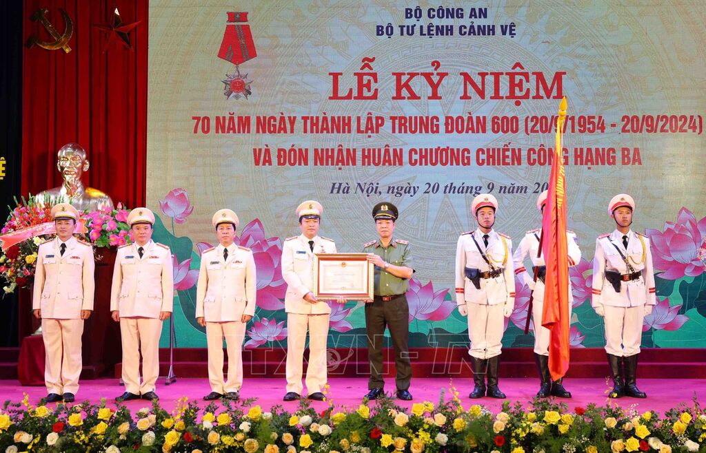 Ngày 20/9, tại Thủ đô Hà Nội, Bộ Tư lệnh Cảnh vệ, Bộ Công an tổ chức Lễ Kỷ niệm 70 năm Ngày thành lập Trung đoàn 600 (đơn vị trực thuộc Bộ Tư lệnh) và đón nhận Huân chương Chiến công hạng Ba.