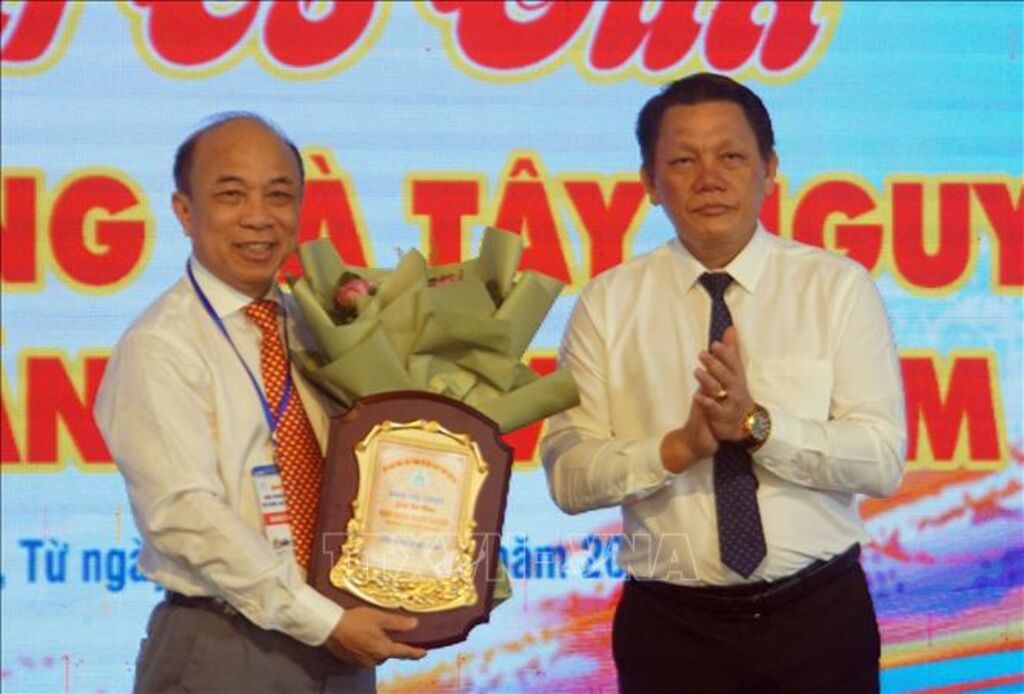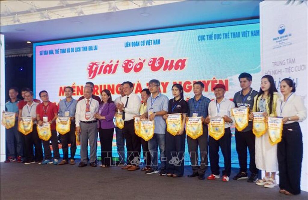 Ông Bùi Trung Hiếu - Phó Giám đốc Sở Văn hoá, Thể thao và Du lịch tỉnh Gia Lai tặng hoa cho đại diện Cục Thể dục thể thao Việt Nam tại lễ khai mạc giải.