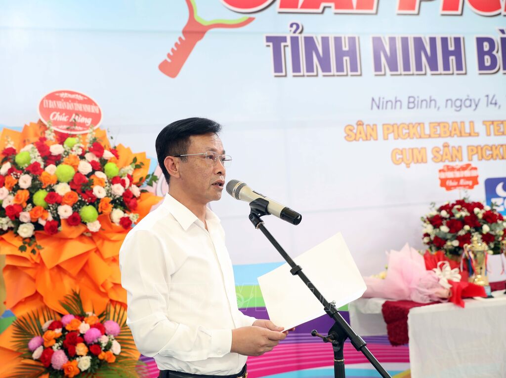 Phát biểu khai mạc, ông Nguyễn Tân Anh, Phó Giám đốc Sở Văn hóa và Thể thao tỉnh Ninh Bình, Trưởng ban Tổ chức giải cho biết: Pickleball là một môn thể thao mới du nhập vào Việt Nam nhưng đã nhanh chóng thu hút được sự quan tâm và tham gia của đông đảo người dân ở nhiều lứa tuổi bởi sự hấp dẫn, dễ chơi và lợi ích sức khỏe. Ngoài một số lợi ích cải thiện sức bền và sự nhanh nhạy, môn này còn giúp người chơi tăng cường hệ miễn dịch, hệ cơ xương, giải tỏa mọi áp lực, căng thẳng trong công việc cũng như cuộc sống hàng ngày. Giải là cơ hội, điều kiện tốt để các vận động viên của các đơn vị, thi đấu cọ xát, nâng cao trình độ chuyên môn; góp phần đẩy mạnh phát triển phong trào tập luyện, thi đấu thể thao nói chung và Pickleball nói riêng rộng khắp trên địa bàn toàn tỉnh.