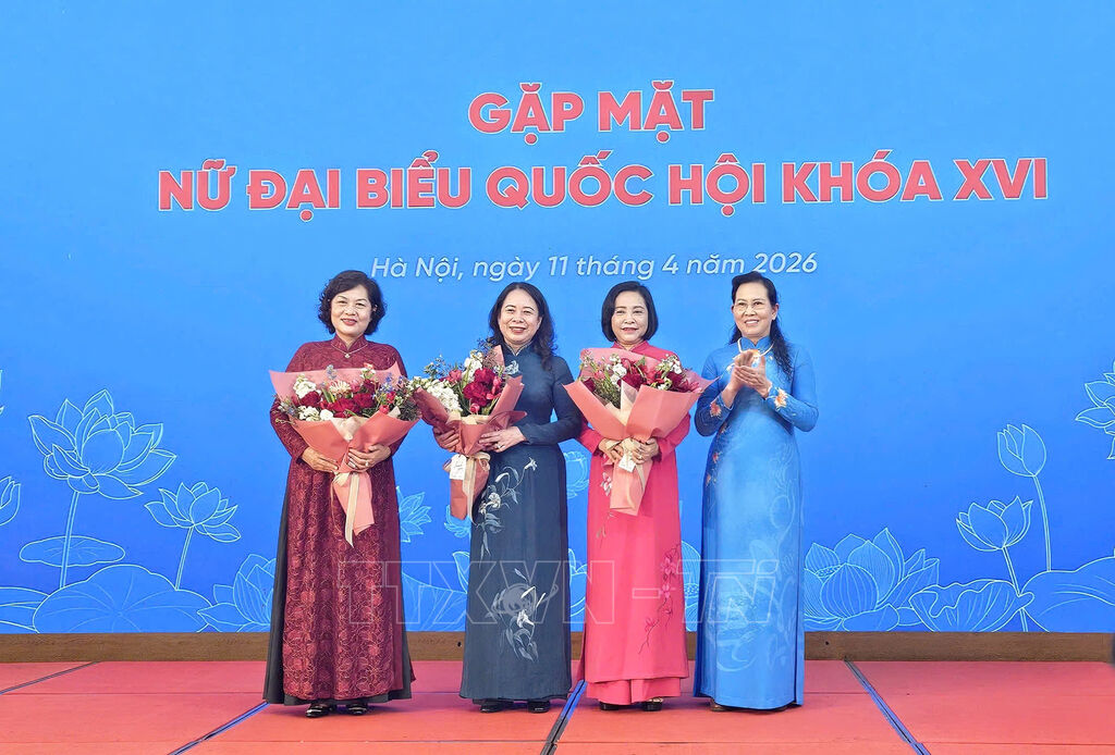 Bí thư Trung ương Đảng, Phó Chủ tịch Nước Võ Thị Ánh Xuân; các Ủy viên Trung ương Đảng, Phó Chủ tịch Quốc hội: Nguyễn Thị Thanh, Nguyễn Khắc Định, Nguyễn Thị Hồng dự cuộc gặp mặt.
