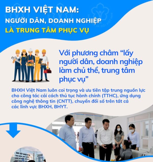 Với phương châm lấy người dân làm trung tâm phục vụ, Bảo hiểm Xã hội Việt Nam luôn coi trọng và ưu tiên tập trung nguồn lực cho công tác đẩy mạnh cải cách thủ tục hành chính, ứng dụng công nghệ thông tin. Ngành thường xuyên rà soát, cắt giảm hồ sơ, thủ tục không cần thiết, tạo thuận lợi tối đa cho người dân, doanh nghiệp khi giao dịch với cơ quan Bảo hiểm Xã hội; thực hiện chuyển đổi số toàn diện.100% thủ tục hành chính được cung cấp dịch vụ công trực tuyến toàn trình và tích hợp trên Cổng Dịch vụ công Bảo hiểm Xã hội Việt Nam, từng bước tích hợp trên Cổng Dịch vụ công Quốc gia.