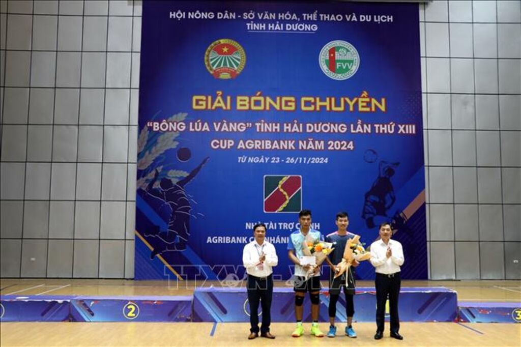 Sau 4 ngày tranh tài sôi nổi và hào hứng với sự cổ vũ nhiệt tình của hàng nghìn khán giả, ngày 26/11, Giải bóng chuyền Bông lúa vàng tỉnh Hải Dương lần thứ XIII cup Agribank năm 2024 đã bế mạc. Giải do Hội Nông dân phối hợp cùng Sở Văn hóa, Thể thao và Du lịch Hải Dương tổ chức diễn ra tại Nhà thi đấu Thể dục – Thể thao tỉnh Hải Dương từ ngày 23/11 với sự tham gia của 148 vận động viên, huấn luyện viên của 12 đội bóng chuyền nam Hội Nông dân đại diện cho 12 huyện, thị xã, thành phố trong tỉnh. Các vận động viên tham dự giải là cán bộ, hội viên, nông dân là những người trực tiếp sản xuất và phục vụ sản xuất nông nghiệp, tiểu thủ công nghiệp, dịch vụ nông nghiệp, cán bộ công chức xã, phường, thị trấn và học sinh, sinh viên các trường chuyên nghiệp, dạy nghề trên địa bàn tỉnh...