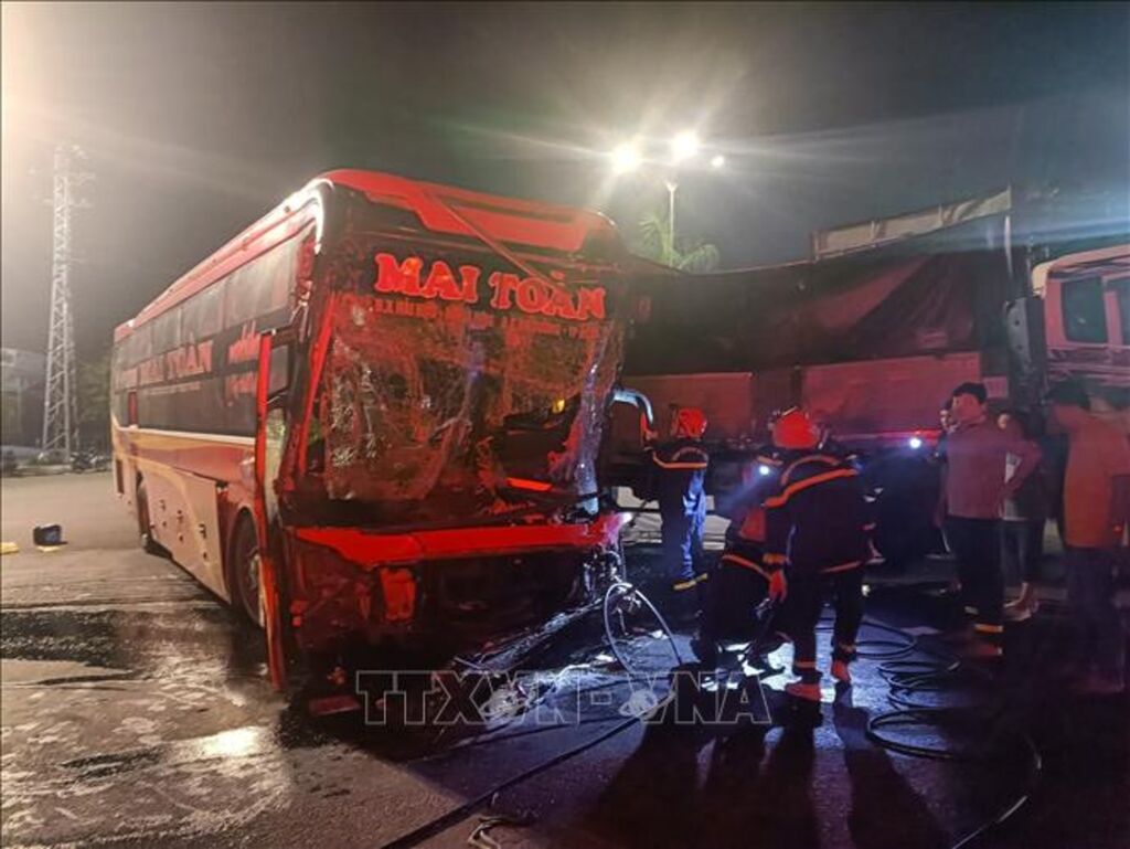 Lúc này, có một nạn nhân là tài xế xe khách Phạm Hoàng Hải (sinh năm 1979, quê huyện Trực Ninh, tỉnh Nam Định) đang bị thương mắc kẹt trong cabin. Thùng nhiên liệu của xe tải, xe khách bị tác động biến dạng và đổ tràn nhiên liệu ra mặt đường, có nguy có phát sinh vụ cháy.