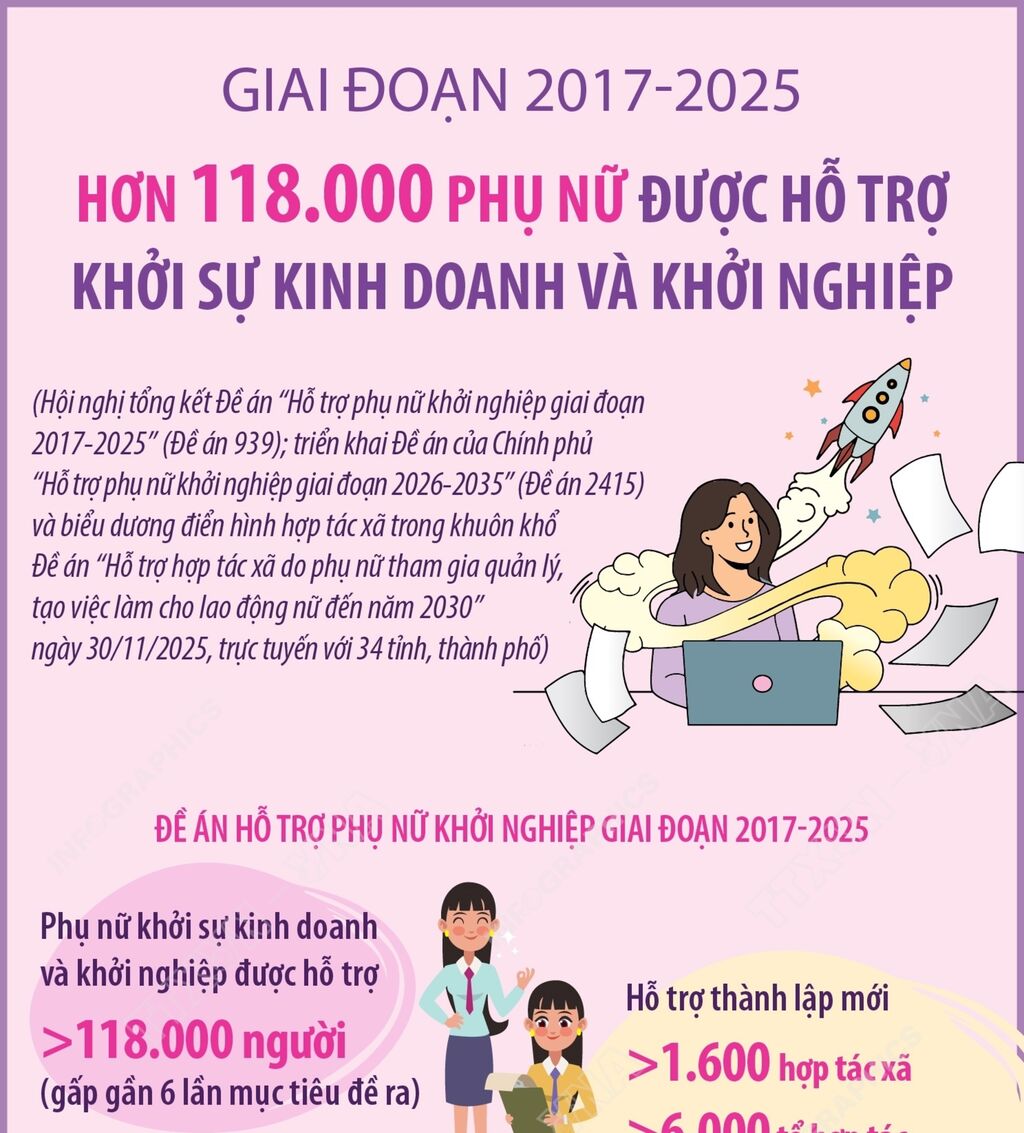 Đề án hỗ trợ phụ nữ khởi nghiệp giai đoạn 2017-2025 được triển khai đồng bộ, hiệu quả, có tính bền vững, đạt và vượt tất cả mọi mục tiêu. Đề án đã nâng cao nhận thức, khơi dậy khát vọng, truyền cảm hứng, tạo nên một phong trào khởi nghiệp sâu rộng trong phụ nữ; hỗ trợ thiết thực về vốn, kiến thức, kỹ năng, giúp hàng trăm nghìn phụ nữ tự tin tham gia khởi nghiệp, khởi sự kinh doanh.