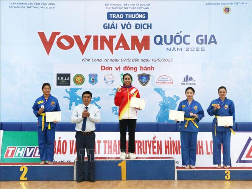 Sau gần 6 ngày tranh tài sôi nổi, kịch tính tại Nhà thi đấu đa năng tỉnh Vĩnh Long, ngày 15/9, Giải Vô địch Vovinam quốc gia năm 2025 chính thức khép lại.