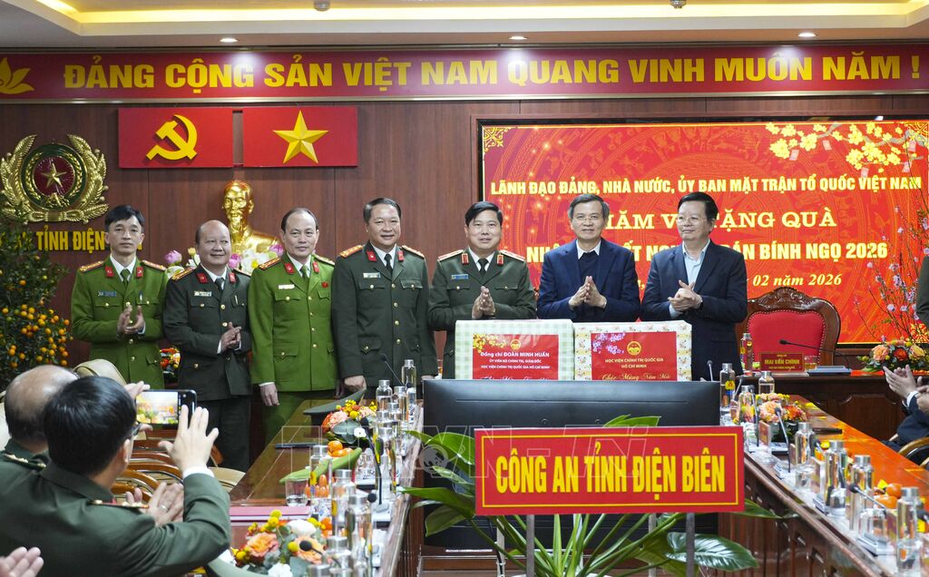 Chúc tết cán bộ, chiến sĩ Công an tỉnh Điện Biên, Giám đốc Học viện Chính trị Quốc gia Hồ Chí Minh đề nghị đơn vị tiếp tục quan tâm xây dựng thế trận lòng dân, an ninh nhân dân, phối hợp với các lực lượng khác làm tốt công tác đảm bảo an sinh xã hội, chăm lo cho cuộc sống của người dân; đảm bảo tuyệt đối an toàn cho cuộc bầu cử đại biểu Quốc hội và Hội đồng nhân dân các cấp nhiệm kỳ 2026 - 2031.
