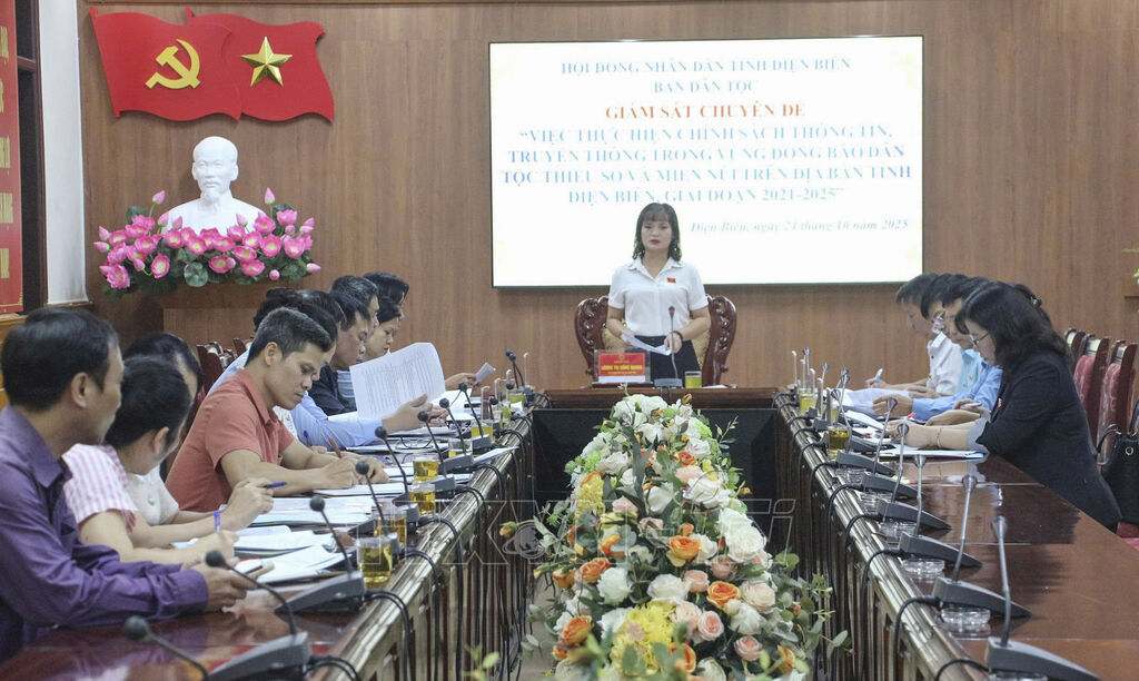 Chiều 24/10, Đoàn giám sát chuyên đề của Ban Dân tộc (HĐND tỉnh Điện Biên) làm việc với các sở, ngành liên quan về “Việc thực hiện chính sách thông tin, truyền thông trong vùng đồng bào dân tộc thiểu số và miền núi giai đoạn 2021–2025”.