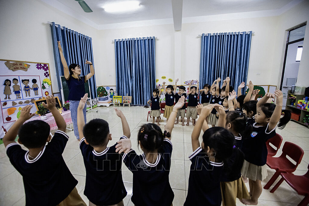 Trên khuôn viên rộng rãi của Trường Mầm non Vũ Lâm, sắc hoa giấy hồng rực xen giữa khoảng sân lát gạch sạch bóng. Tiếng hát của các em nhỏ hòa cùng tiếng trống trường ngân vang, tạo nên bức tranh sinh động về một vùng quê đang từng ngày đổi thay.
